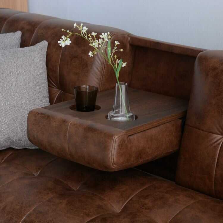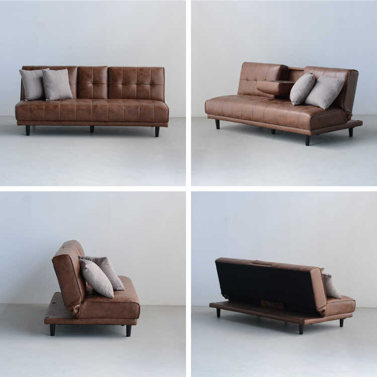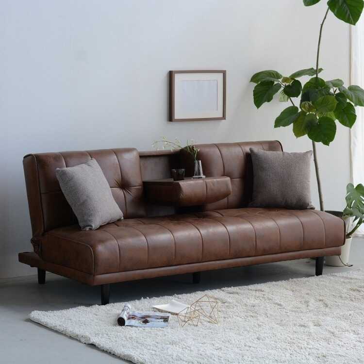 収納できるミニテーブルが付いたソファーベッド。