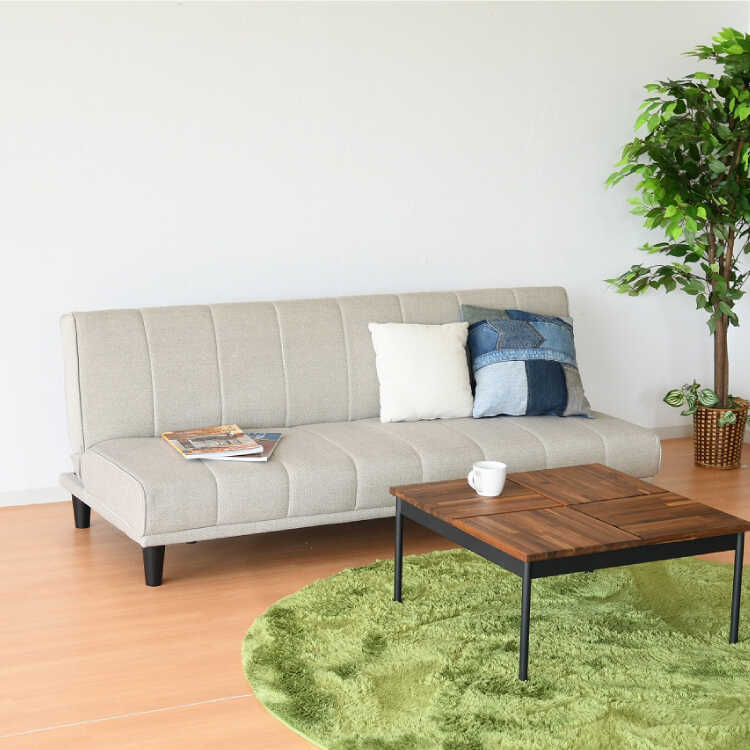 幅180cm・シンプルデザインの布製ソファーベッド(ベージュ色・ロータイプOK)