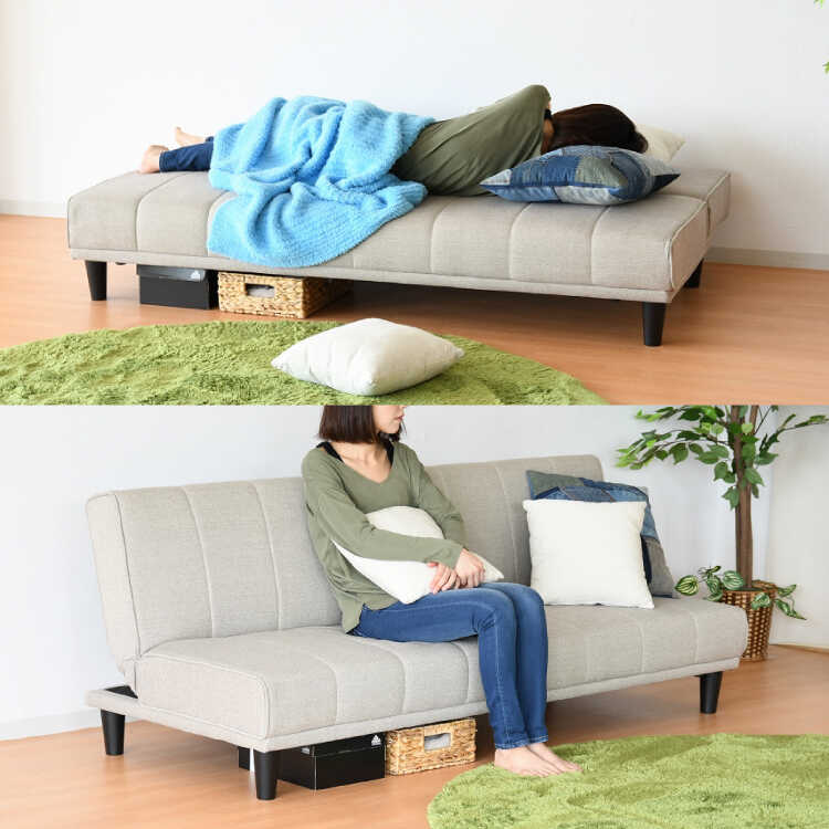 SF-4385 シンプルデザイン布製ソファーベッド・幅180cmベージュ