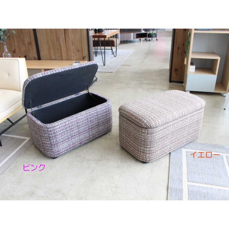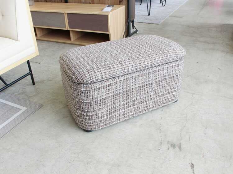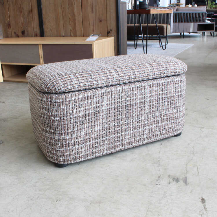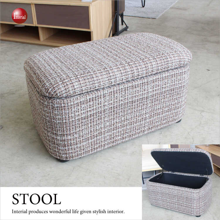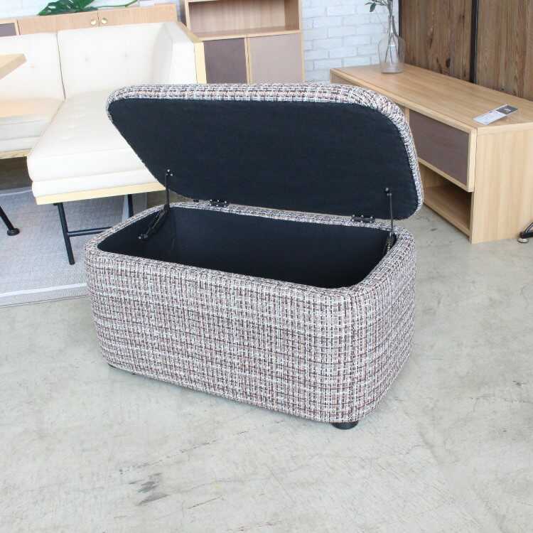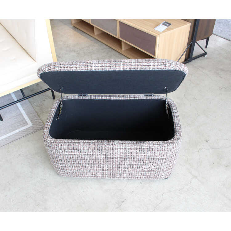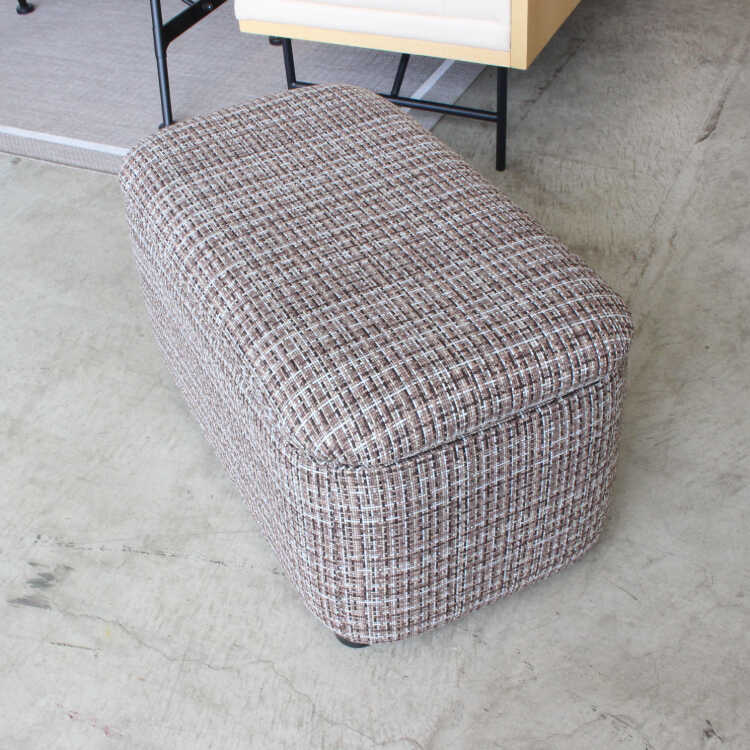 トレンドのツイード風生地を使用したおしゃれな布製の収納付きベンチ。