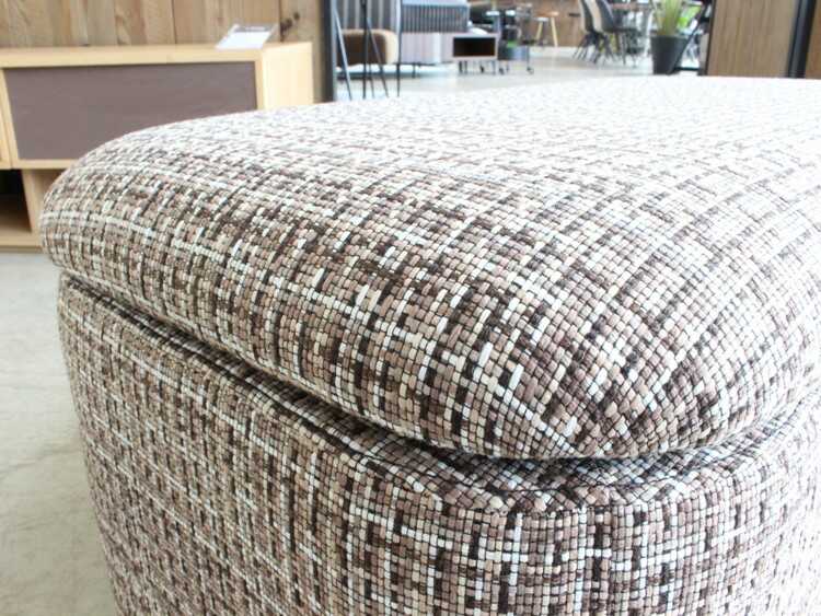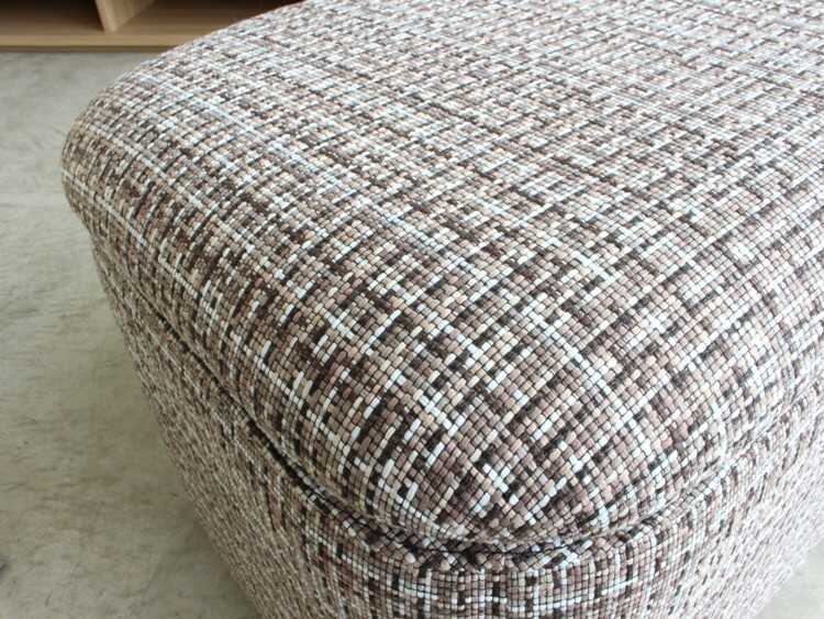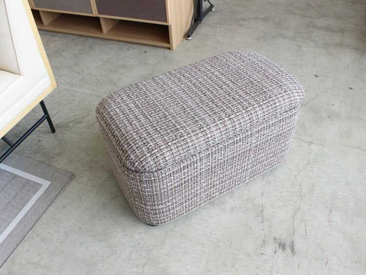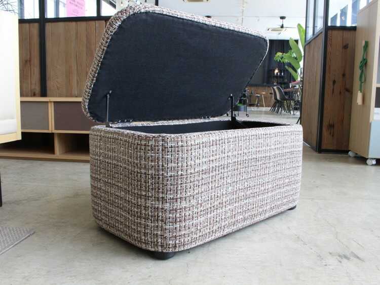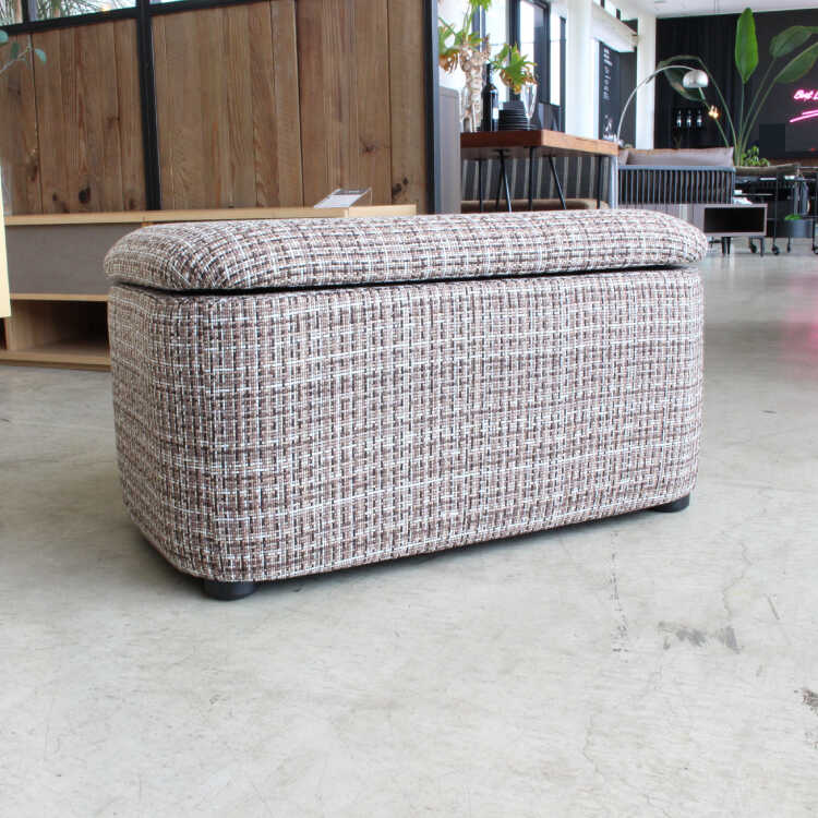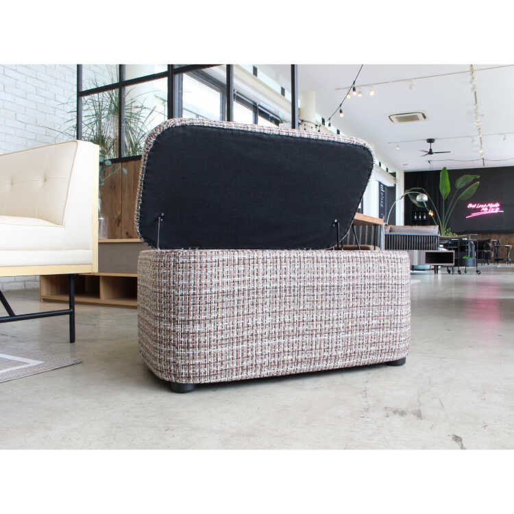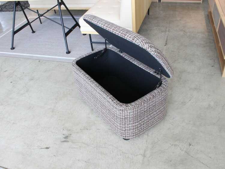 トレンドのツイード風生地を使用したおしゃれな布製の収納付きベンチ。