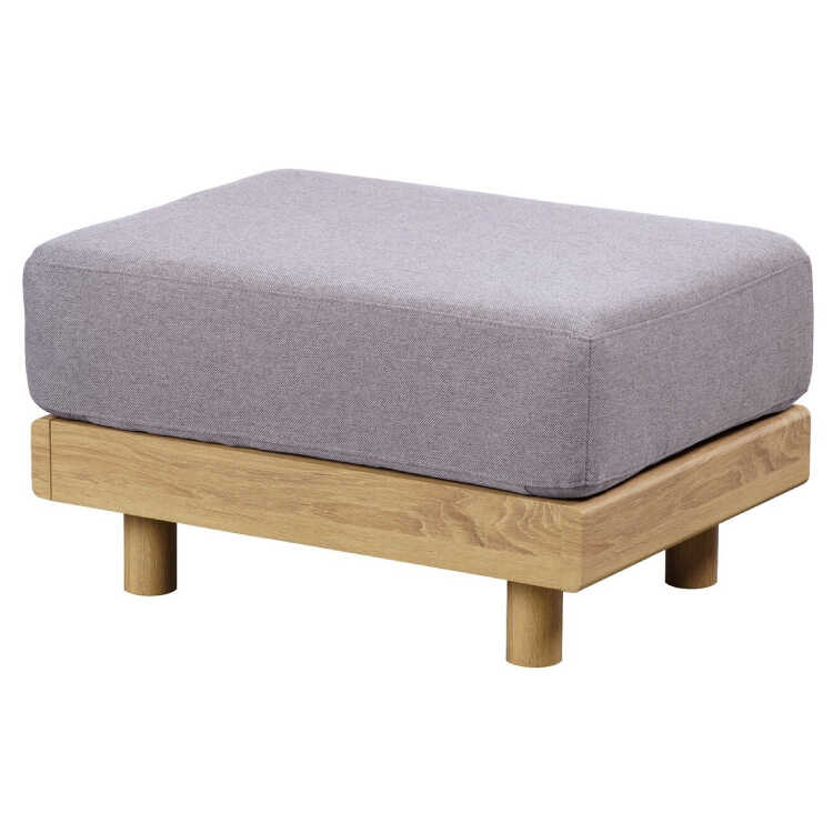 木目が綺麗なナチュラルカラーのフレームにライトグレーのクッションを組み合わせたスツール・オットマン。