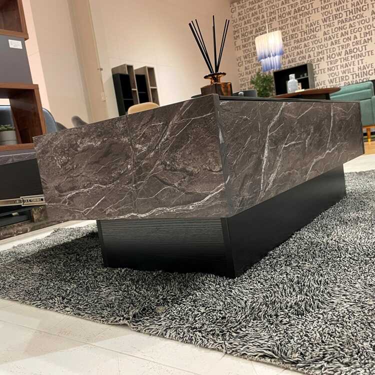 ベース台輪と天板のブラックと大理石柄の組み合わせが高級感に満ちて、空間のお洒落度が一気に上がります。