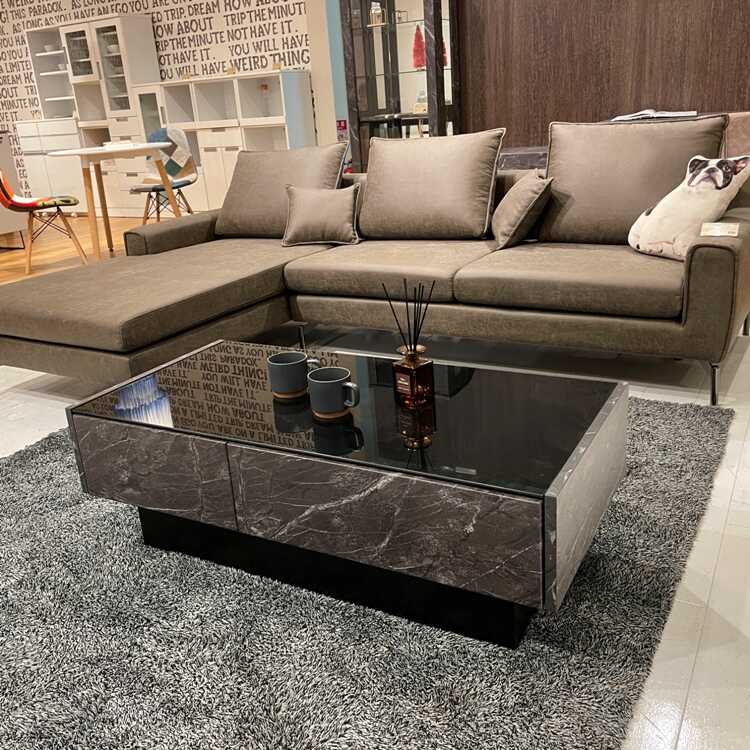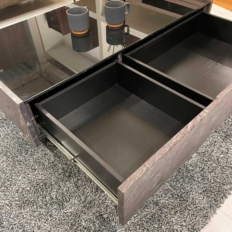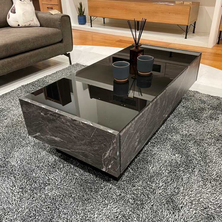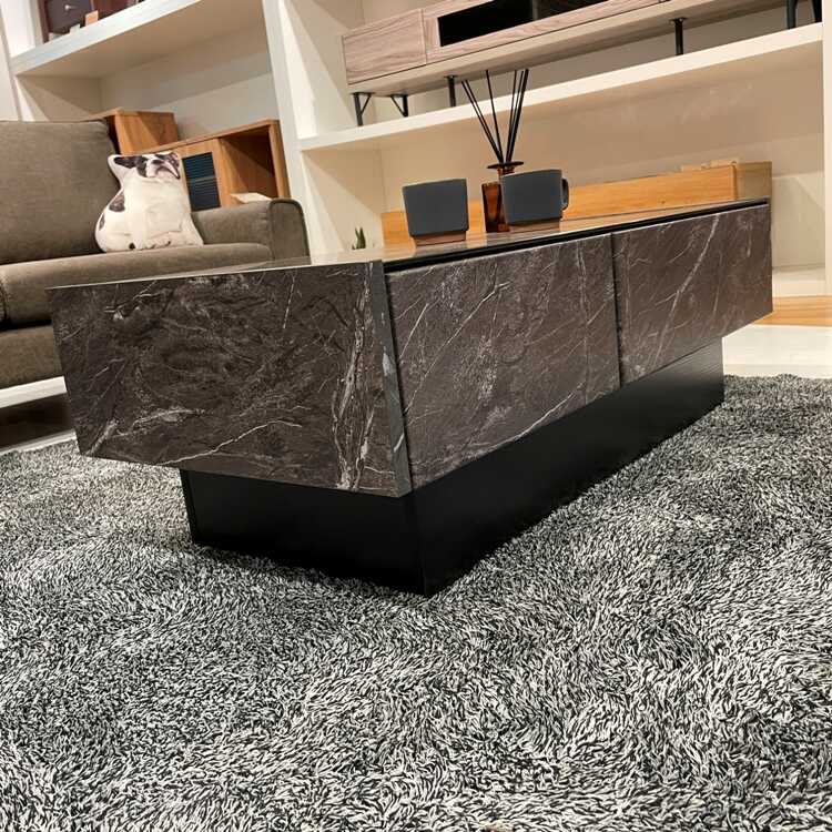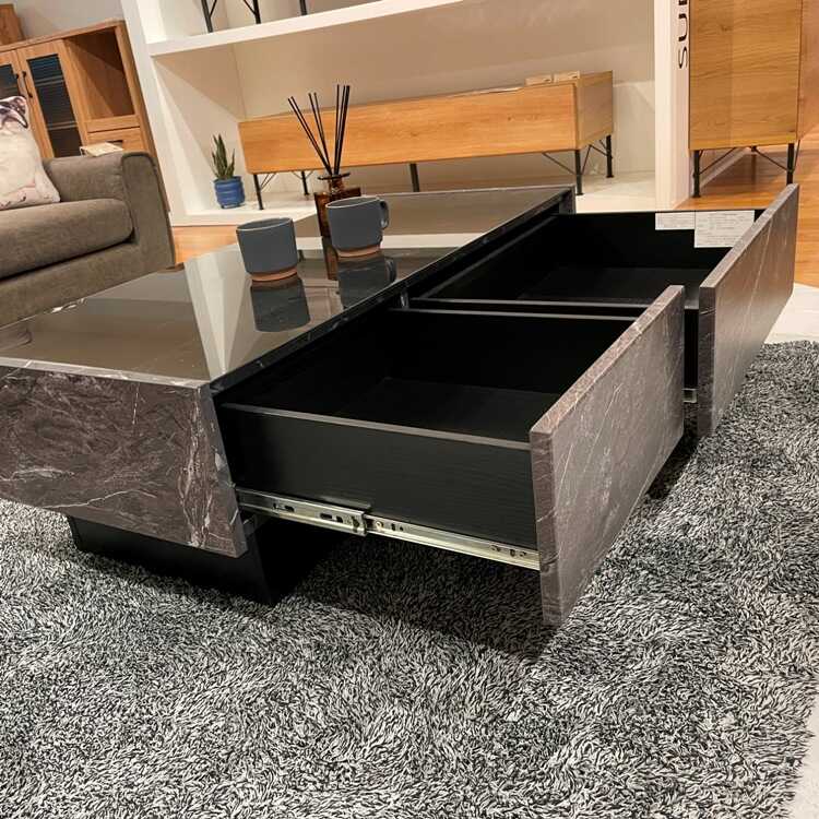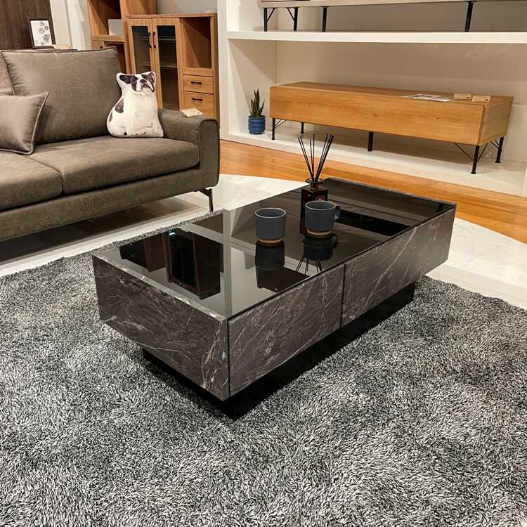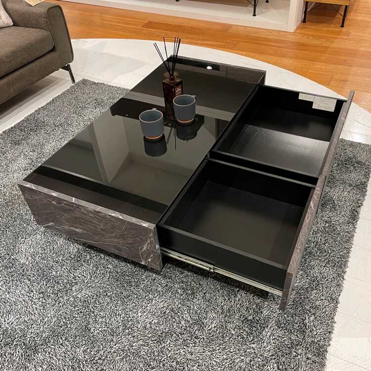 豪華でスタイリッシュな外観と、実用的な大型収納を組み合わせた高級感のあるリビングテーブル。