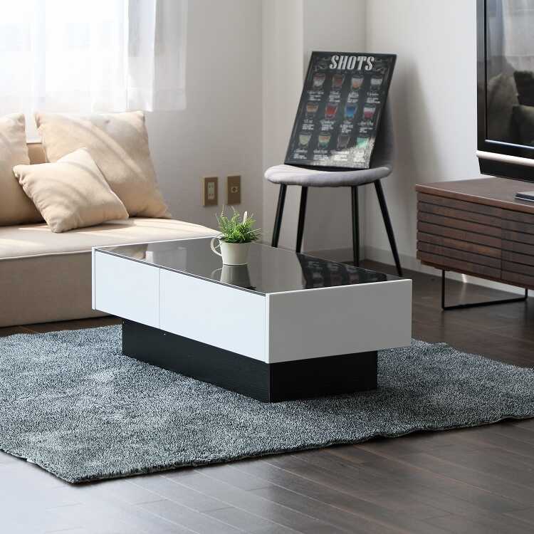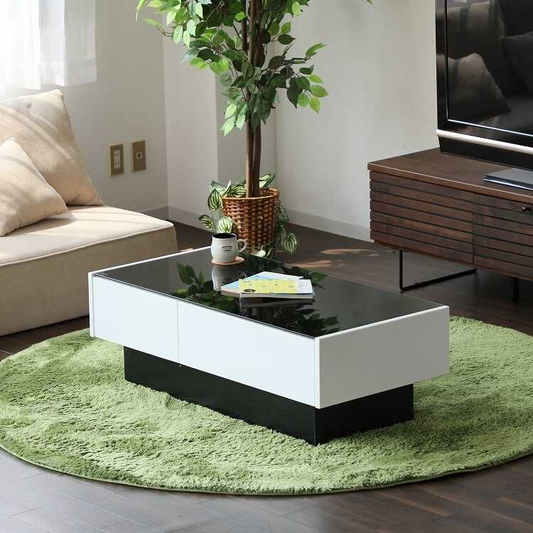 ベース台輪&天板のブラックと光沢ホワイトの組み合わせが高級感に満ちて、空間のお洒落度が一気に上がります。