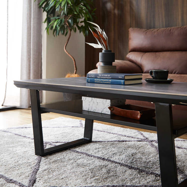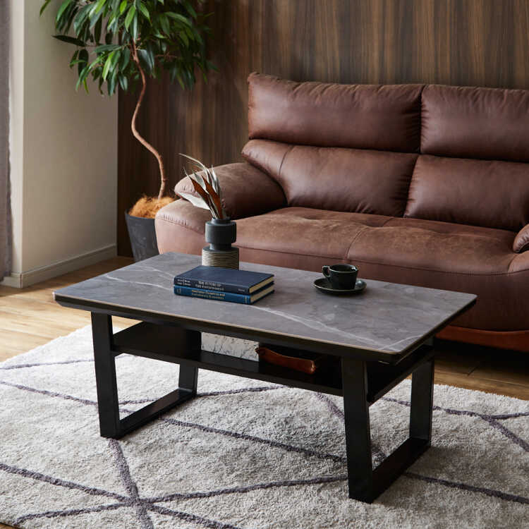 石目柄天板がスタイリッシュ!幅105cmのセラミック製センターテーブル。