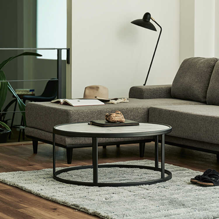丸い天板を支えるフレームは丈夫なスチール製。細身でスッキリとしたデザインなのでお部屋に圧迫感を感じさせません。脚裏には軽微なガタつきを抑えてくれるアジャスターが付いているので、ラグやカーペットの上にも置いていただけます。木材を一切使用していない洗練されたデザインなので、モダンやクールなどかっこいいお部屋づくりを目指している方におすすめです。装飾も抑えているので、様々なデザインのソファとコーディネートしていただけます。
