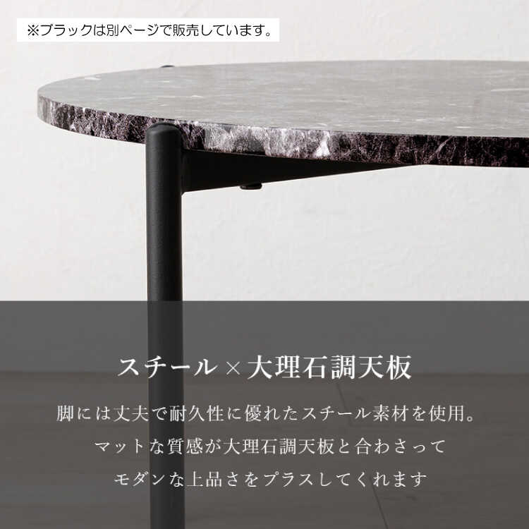 天板は高級感漂うリアルな石目調デザインで、モダンやクール、海外インテリアなどかっこいいお部屋のテイストに相性抜群。本物の大理石を使用していないので、持ち運びがしやすい軽量でメンテナンス性も抜群。うっかり飲み物をこぼしてしまってもサッと拭き取るだけで綺麗になります。また、映える天板なので、小物やアクセサリーを置いてお洒落に写真を撮ることもできます。