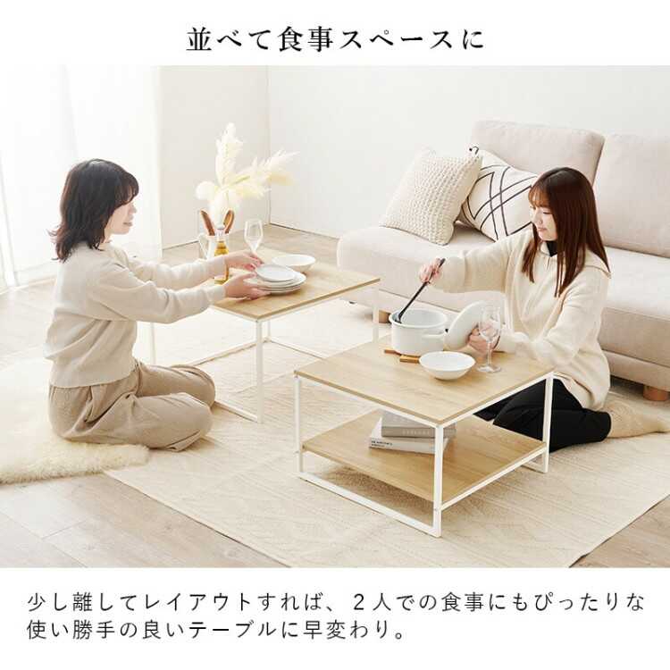 大テーブルの中に小テーブルを重ねて、完全に収められるので、一人暮らしなどの限られた狭いスペースでもポテンシャルが発揮できます。