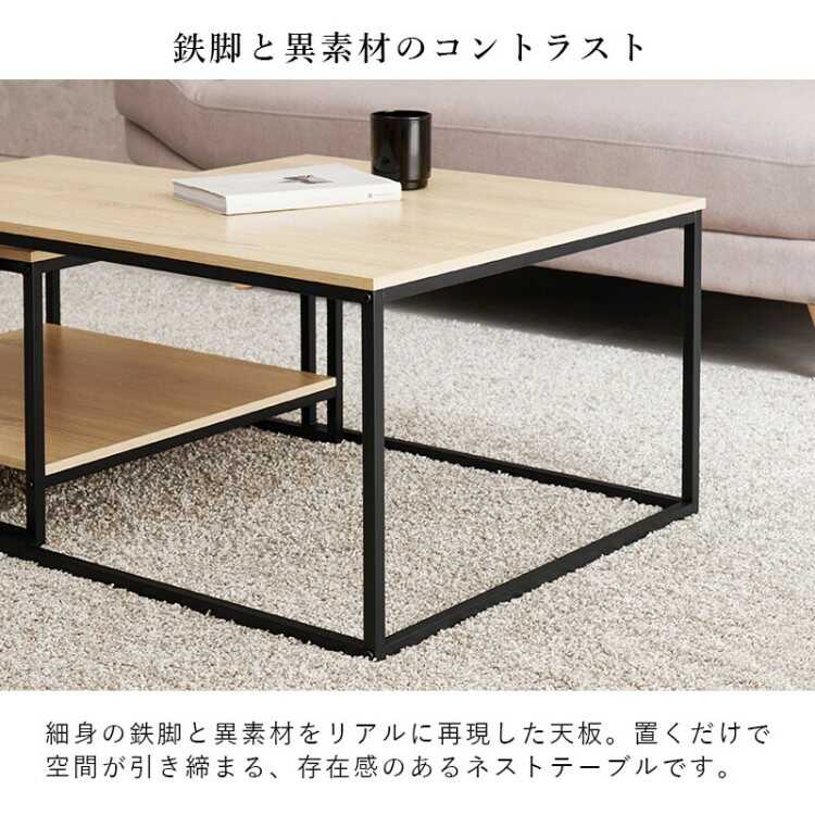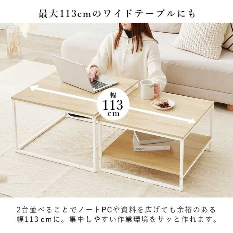 大テーブルと小テーブルがセットになって、幅60cm~113cmの間で自由に長さを調節して使えるネストテーブルです。