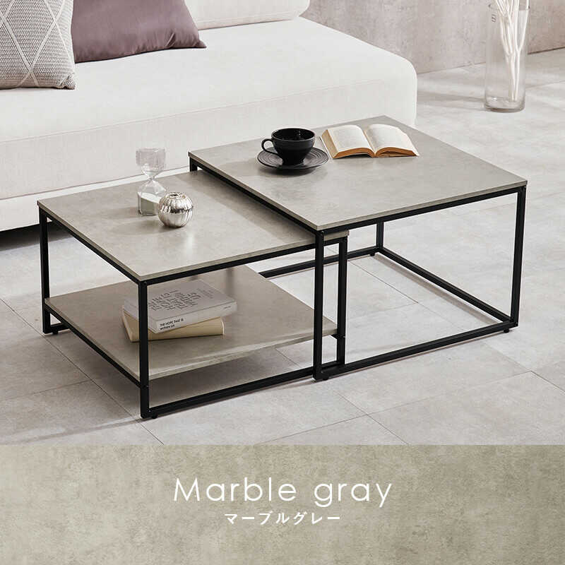 TA-3056 コンクリート柄グレーのネストテーブル・キズに強いメラミン貼り・幅60cm~113cm