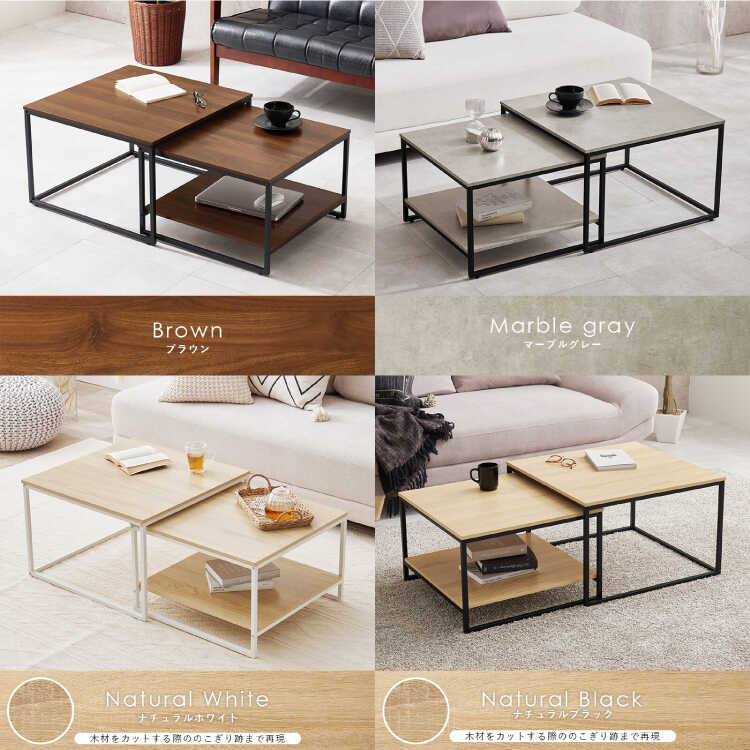 小テーブル…幅53.5cm、奥行53.5cm、高さ35cm材質 メラミン樹脂化粧繊維板、スチール 構造仕様 お客様で組み立てていただく商品です