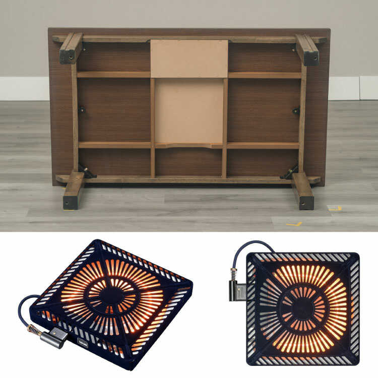 サイズ 幅120cm、奥行70cm、高さ36cm/41cm 材質 天然木オーク突板、UV塗装 仕様補足 メトロ社製ハロゲンヒーター(最大600W)、手元コントローラー付き