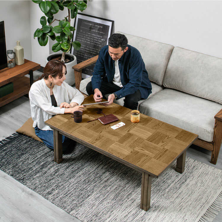他には無い唯一のデザインが秀逸なオールシーズン使えるこたつテーブル。