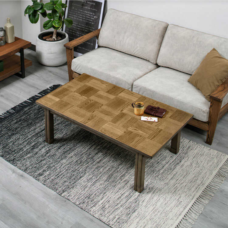 幅120cm・ヴィンテージ風の天然木オーク製こたつテーブル(高さ2段階から選べる!UV塗装)