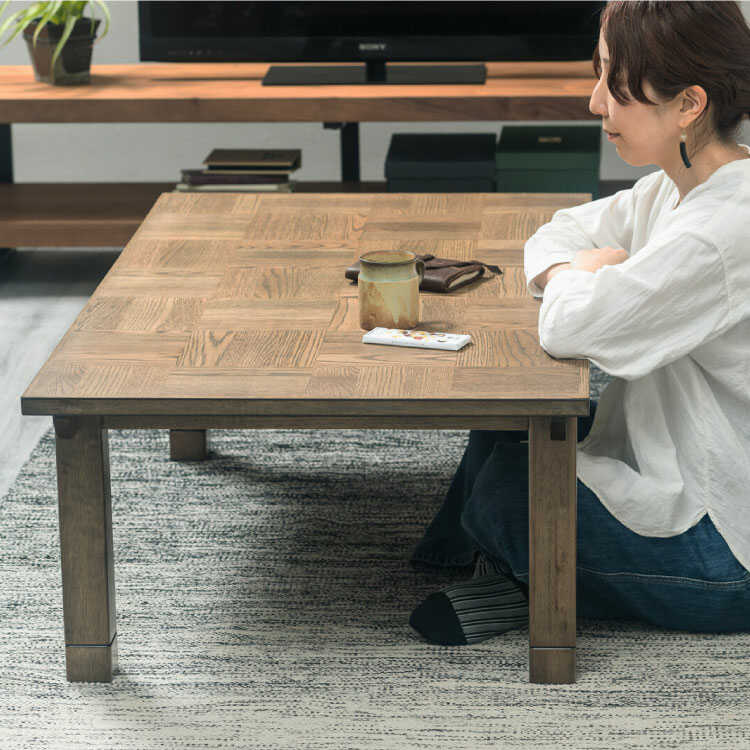TA-3053 ヴィンテージ風の天然木オーク製こたつテーブル・高さ2段階から選べる!幅120cm