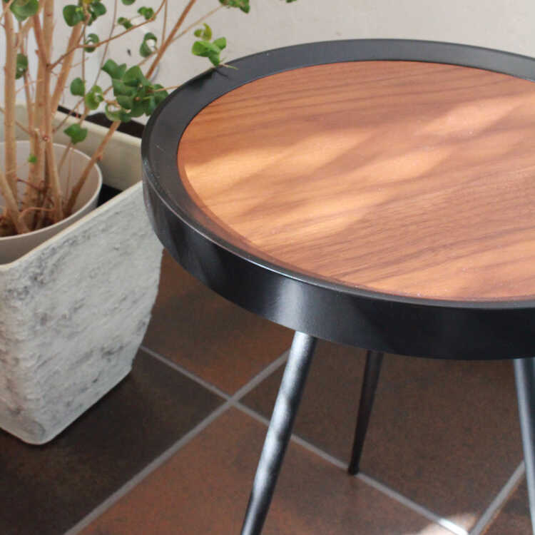 天然木ウォールナット/天然木オークを使用したグレード感のあるおしゃれな円形サイドテーブル。