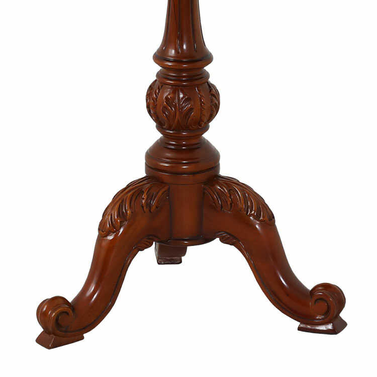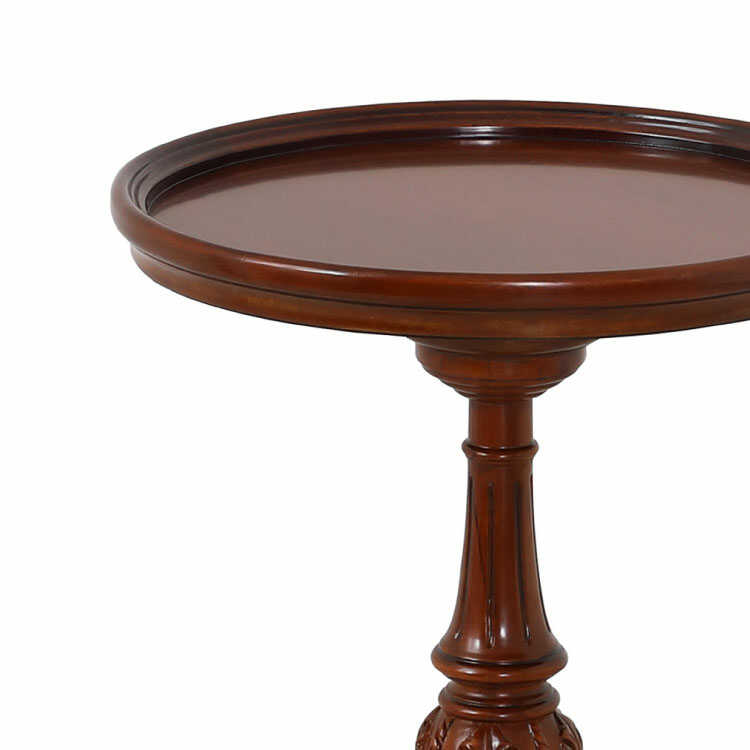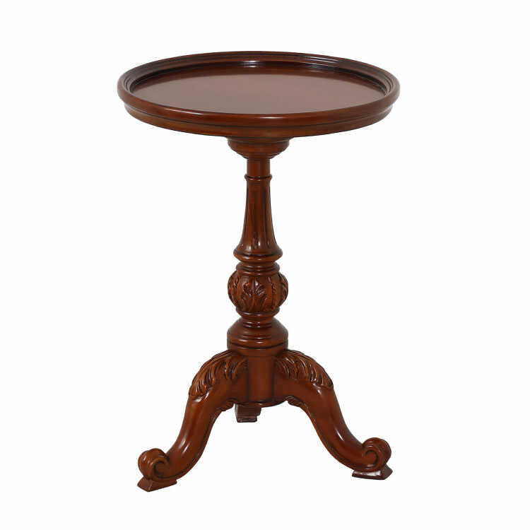 直径43cm・ヨーロピアンな高級ラウンドテーブル(天然木マホガニー製/完成品/ブラウン色)