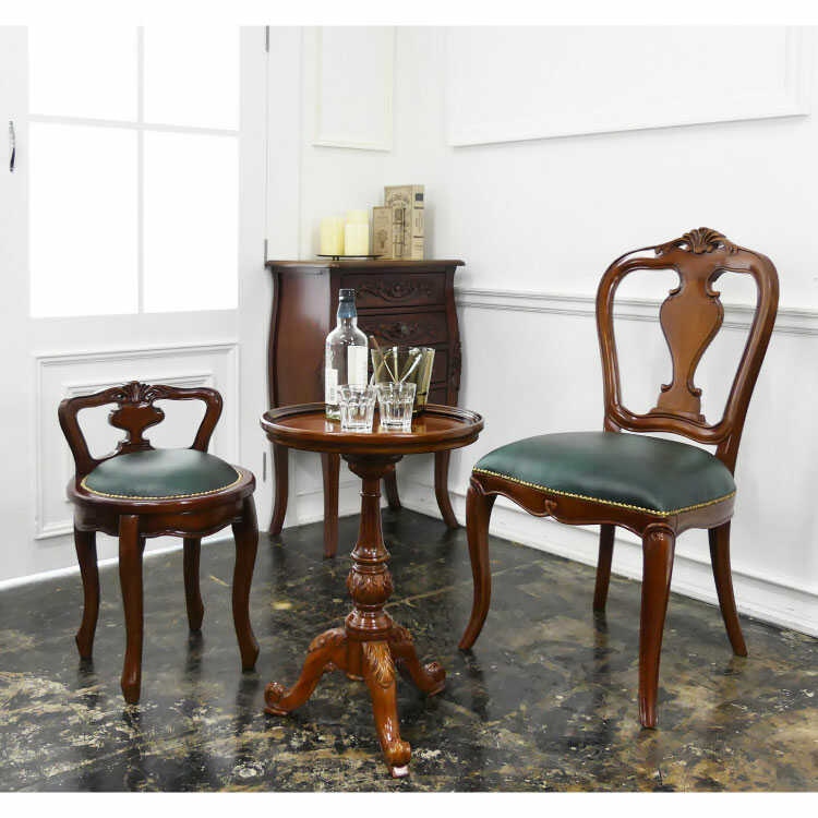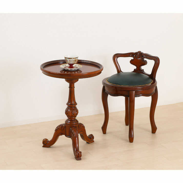 TA-2759 直径43cm・ヨーロピアンな高級ラウンドテーブル(天然木マホガニー製/完成品/ブラウン色)※チェアは付属しません。