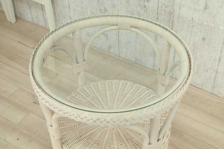直径50cm・ガーリーでかわいいサイドテーブル(ラタン籐&ガラス/完成品)