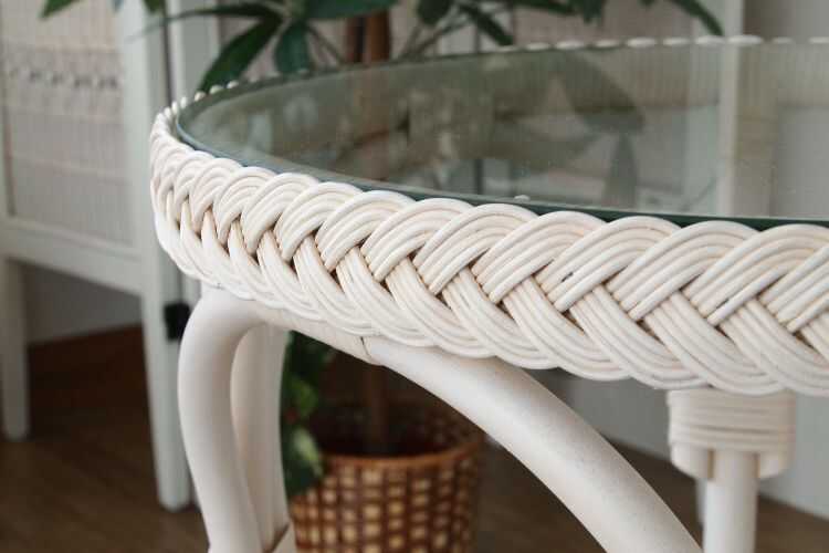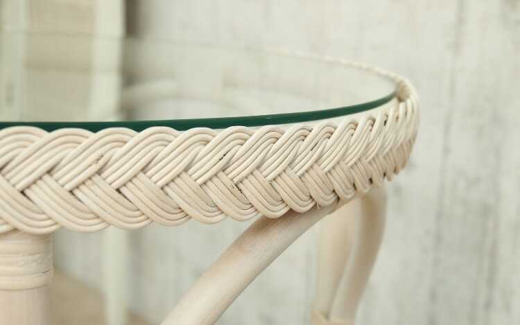 職人が一つ一つ手編みされたラタンフレームにスタイリッシュなガラス天板を合わせたお洒落なデザイン。