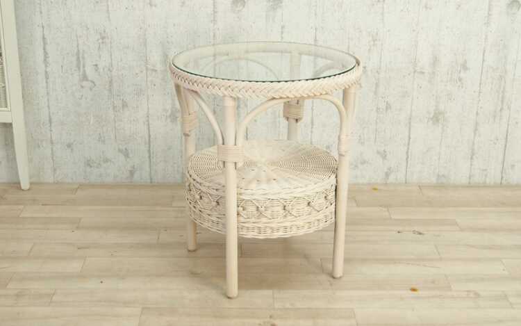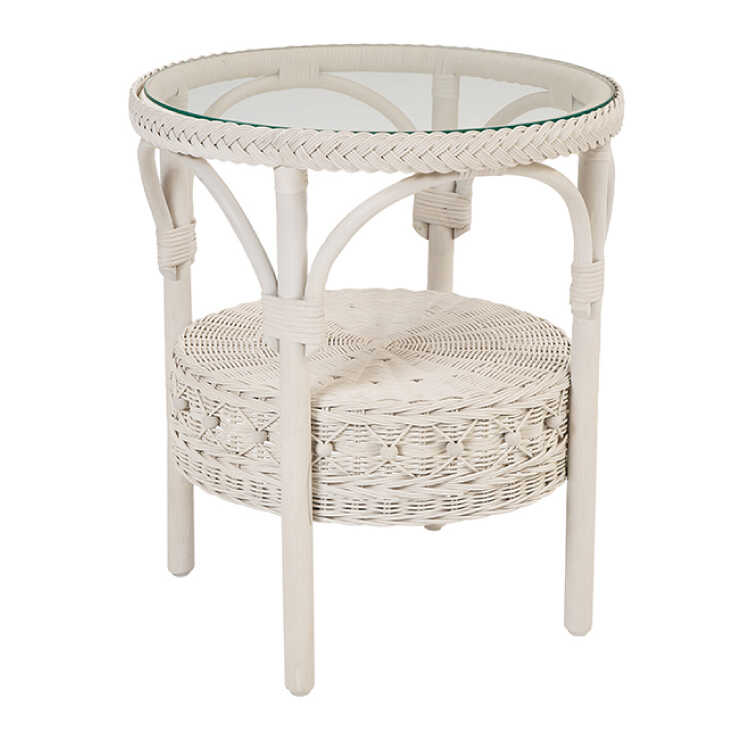 TA-2804 直径50cm・ガーリーでかわいいサイドテーブル(ラタン籐&ガラス/完成品)