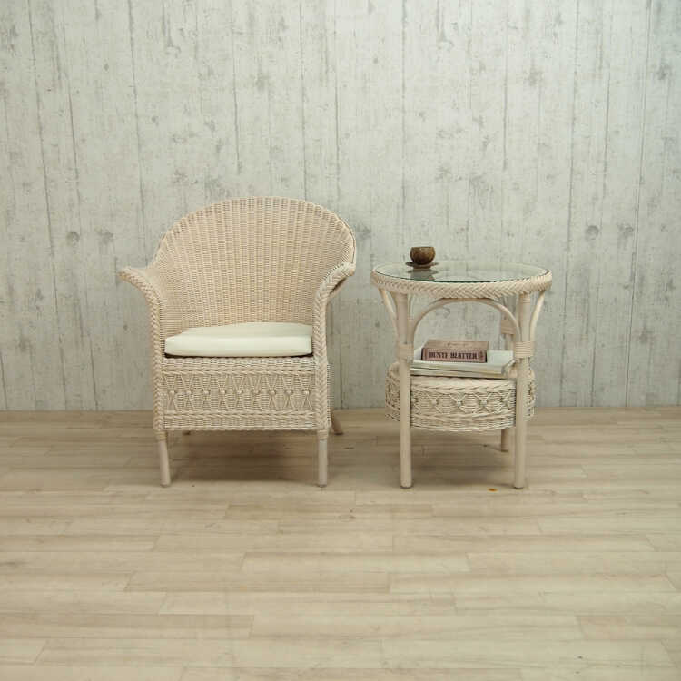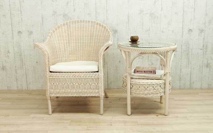 涼しげなラタンを使用した、ガーリーでかわいいサイドテーブル。