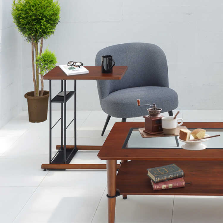ハイセンスなインテリア空間を演出する天然木ウォールナット製のサイドテーブル。