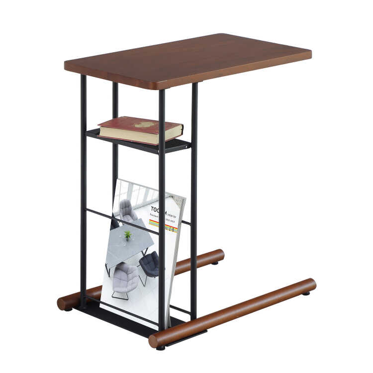 おしゃれなコノ字型サイドテーブルは、天然木ウォールナットの突板天板とスチールを組み合わせた北欧モダンな仕上がりです。