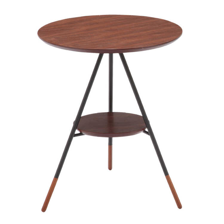 天板…直径40cm、棚板…直径20cm、脚…直径1.6cm材質 天板…天然木化粧繊維板(ウォルナット突板)、ラッカー塗装