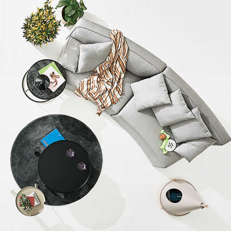 天板を支える脚は天然木バーチ材を採用。すらっと伸びた3本脚がスタイリッシュで、デザイナーズ家具のような佇まいです。脚先は角を落とした丸みのあるデザインで、円形の天板と統一感があります。重量は約3.5kgと軽量なので掃除や移動の際の持ち運びも楽チンです。
