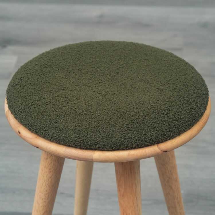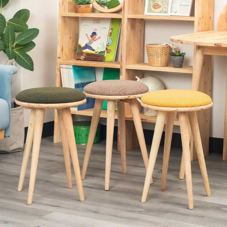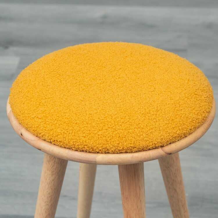 直径34cm・天然木無垢材の丸円形サイドテーブル(クッション付でスツールでも使える)