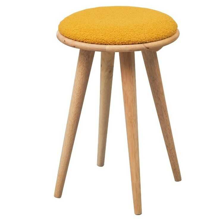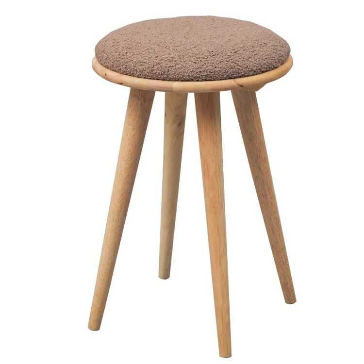 サイズ 直径34cm、板座高さ46.5cm、クッション乗せ高さ49.7cm 材質 天然木ラバーウッド無垢材、ラッカー塗装、ウレタンフォーム 構造仕様 お客様で組み立てていただく商品です