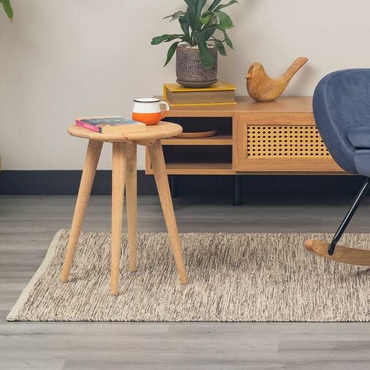 TA-3051 天然木無垢材の丸円形サイドテーブル・直径34cm・クッション付き