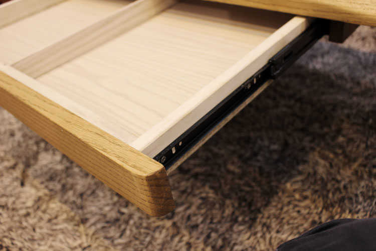 引出し部の前面・側面も贅沢に木材を使用しており、細部まで拘りを感じさせます。