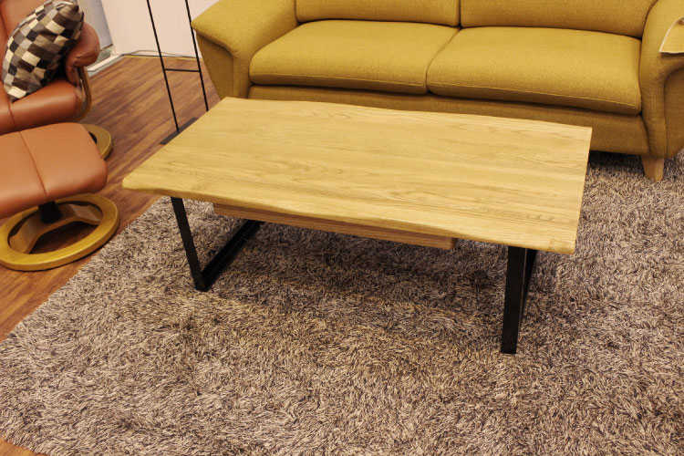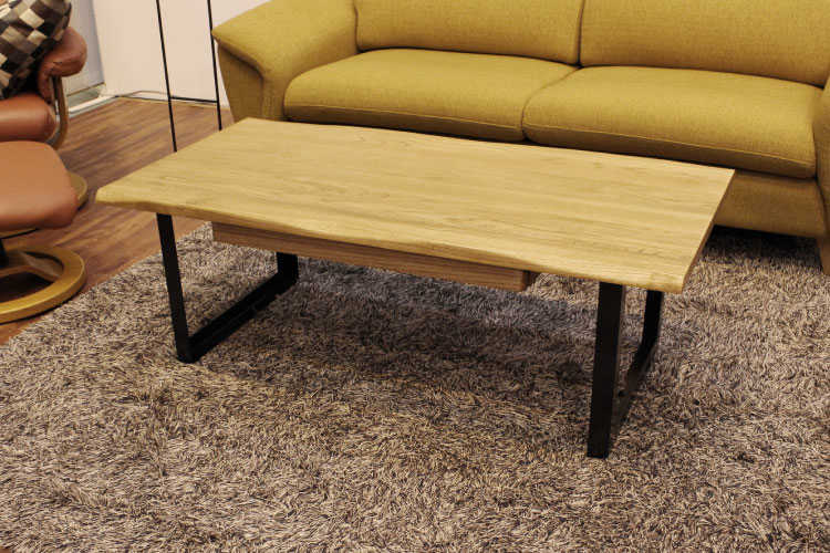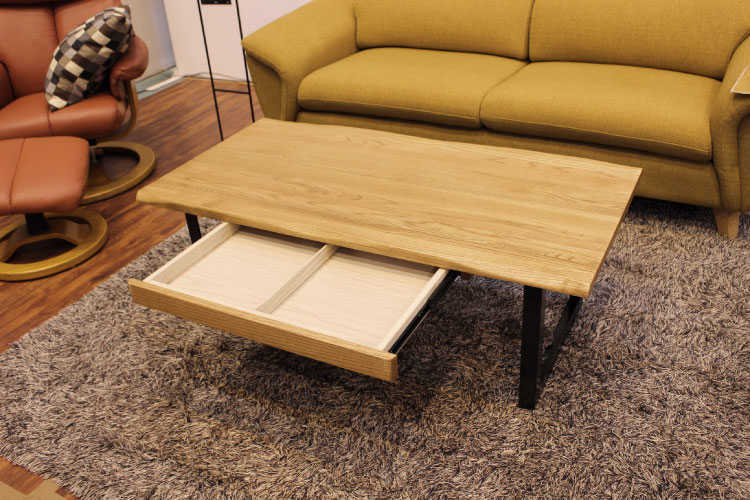 幅120cm・天然木オーク無垢製リビングテーブル(引出し付き)【地域限定SALE適応中!】