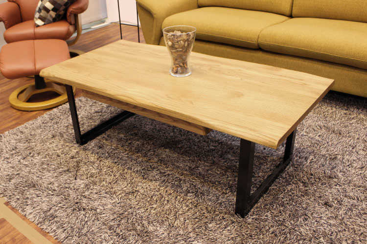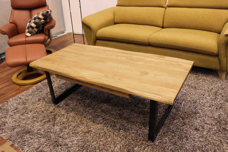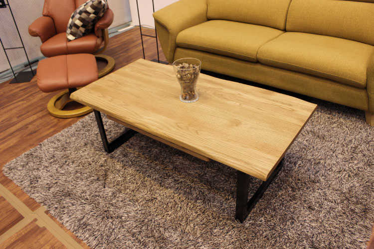 天然木オーク無垢材の天板が重厚感を感じさせる幅120cmリビングテーブル。