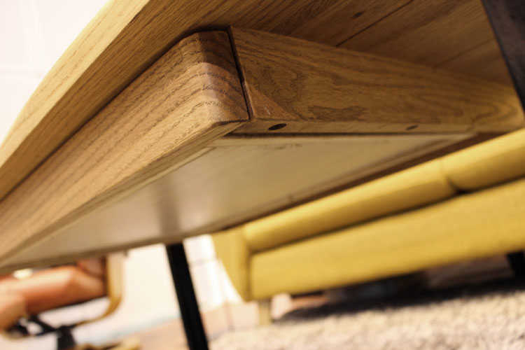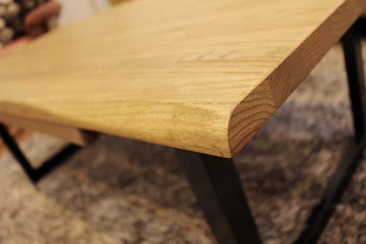 天板の広い辺の両側は荒く削ったような大胆な加工が施されています。