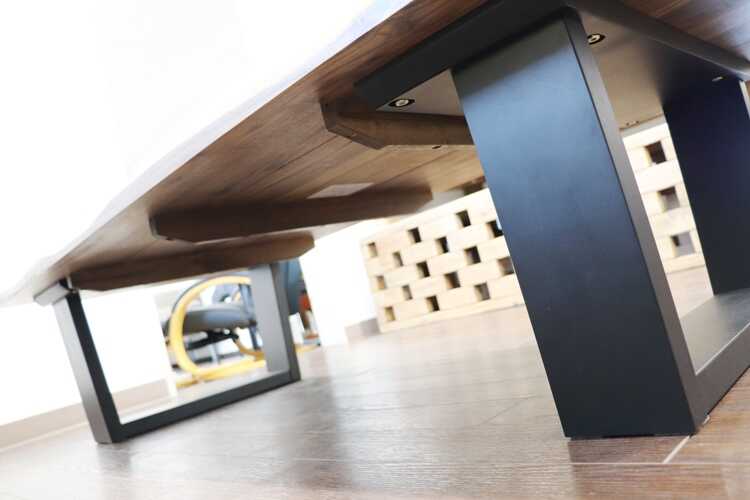 特大サイズのウォールナット製ローテーブルは天板の厚み3cmと重厚感溢れる仕上がり。