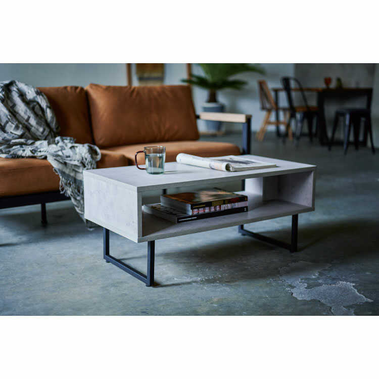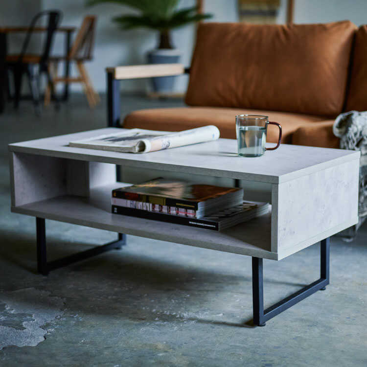 セメント柄と古木柄で選べる!お洒落なオープン収納付きリビングテーブル。