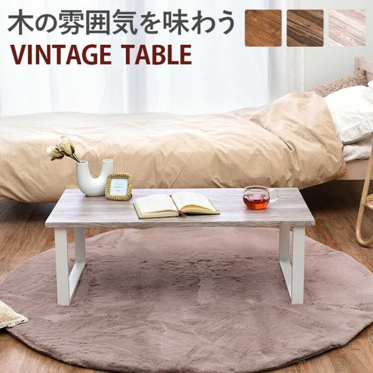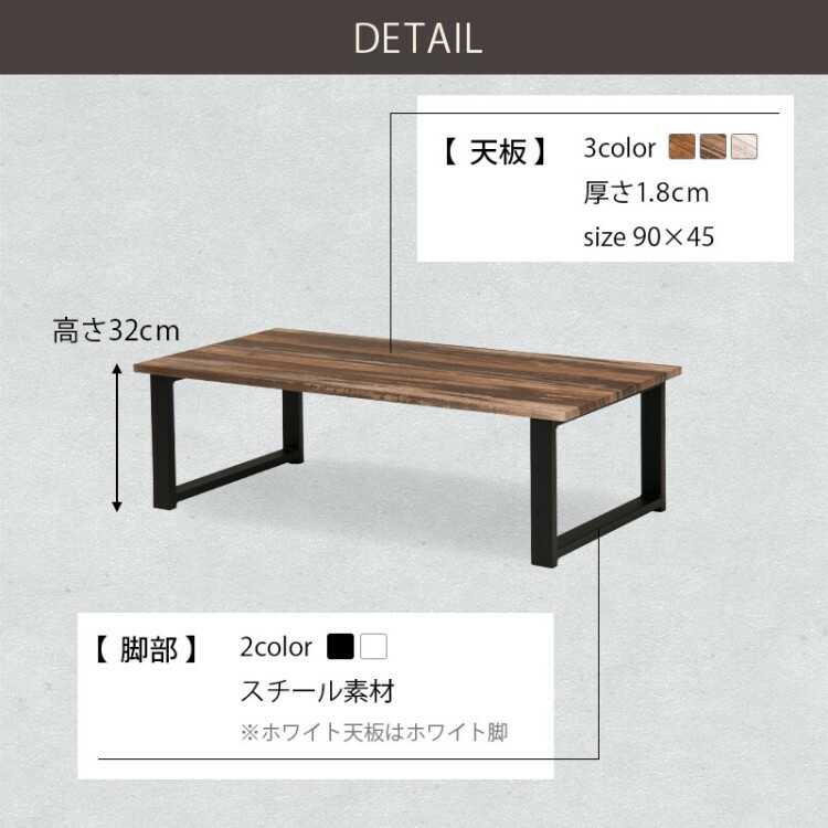 幅90cm・耐水性の激安木製センターテーブル(ヴィンテージ風/ブラウン)