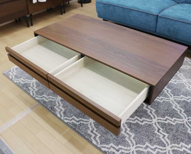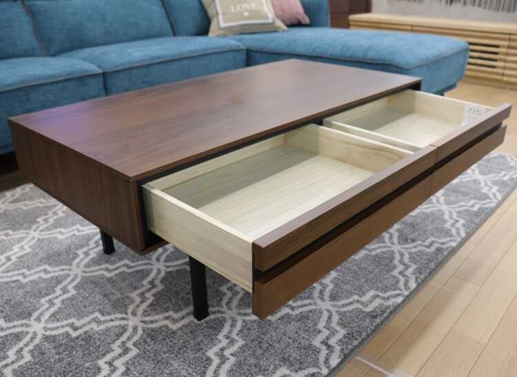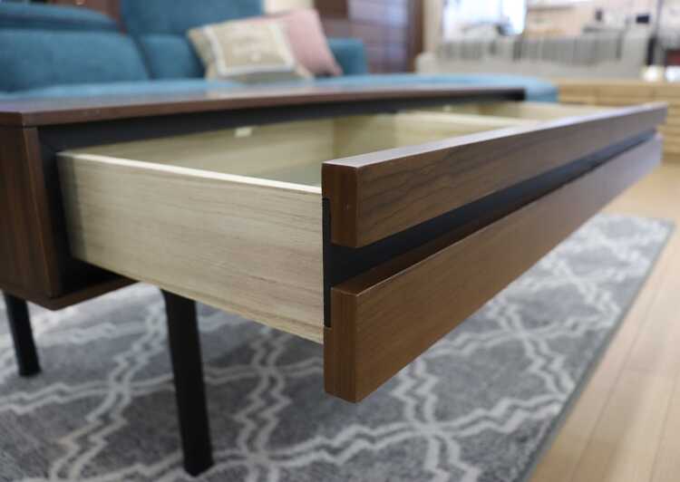 スタイリッシュな外観だけでなく、引き出し2杯による収納力も魅力。リビング周りの整理に一役かってくれます。引出しの反対のサイドはリモコン類やちょっとした小物を置くのに便利なオープンスペースを配置。ビジュアル性と使い勝手の両方を満たしてくれます。