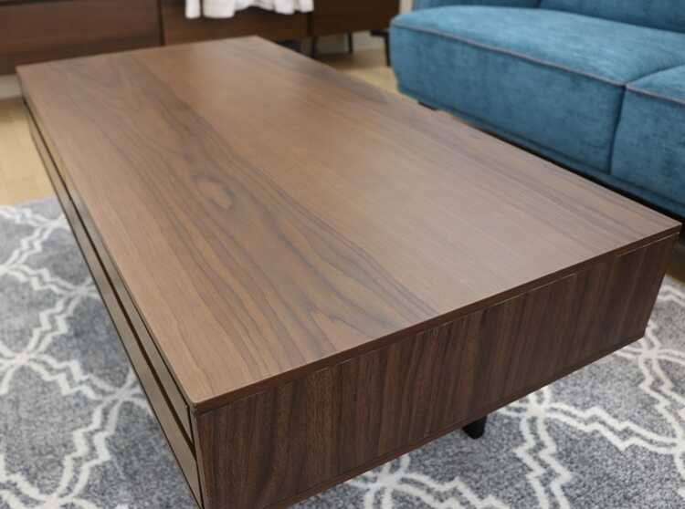 ウォールナットブラウン色と天然木突板の上品な表情、センスの良いアクセントデザインと魅力が詰まった珠玉のリビングテーブル。お掃除ロボットも通過する高さのある天板設定で床座りでの使用も快適。モダンな雰囲気をリビング空間にもたらせてくれるスタイリッシュなローテーブルです。