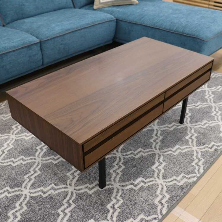 TA-2773 幅100cm・スタイリッシュな高級リビングテーブル(ウォールナット色/天然木工芸突板/本体完成品)
