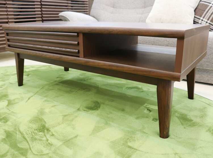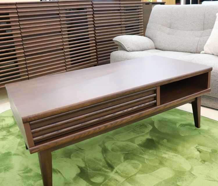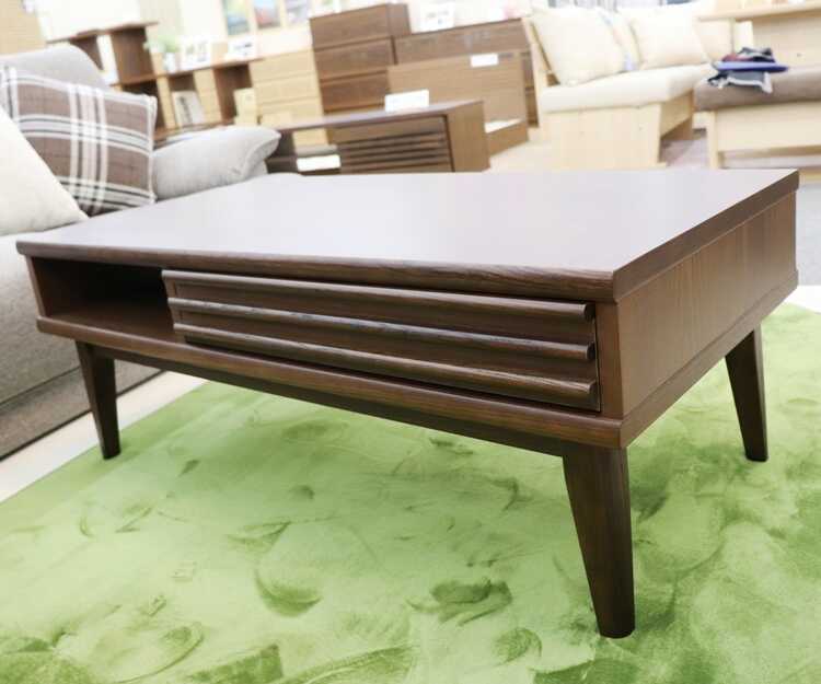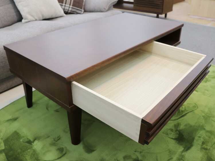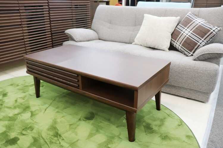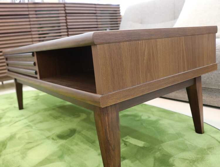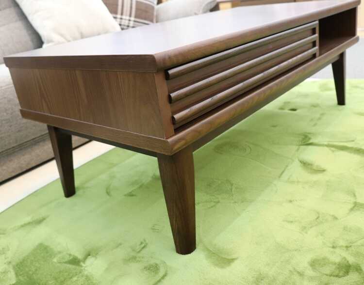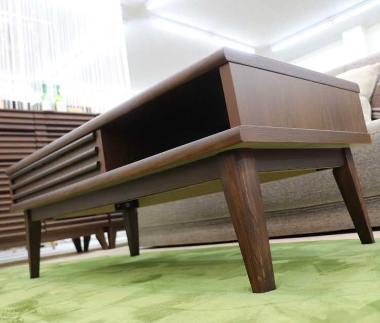 収納付きローテーブルは、味わい深いブラウン色で、北欧やモダンなどのお部屋に相性抜群。