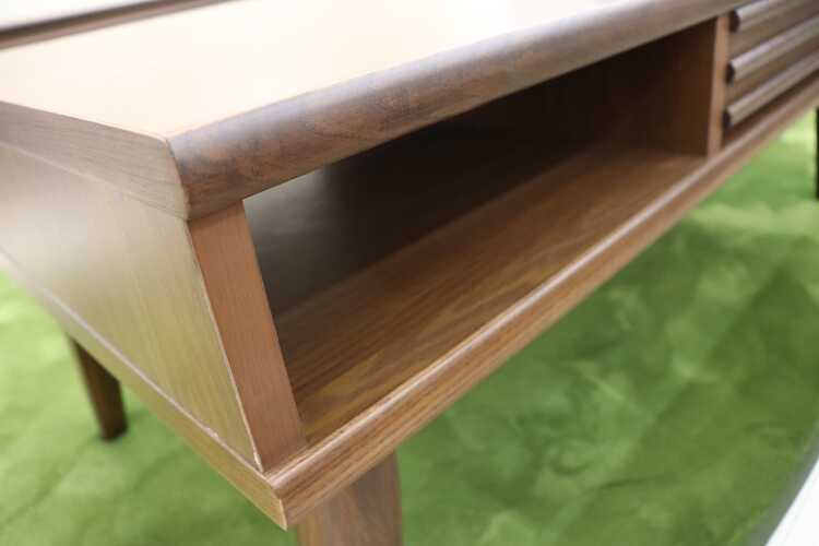重厚感漂うブラウン色が美しい、天然木製収納付きローテーブル。