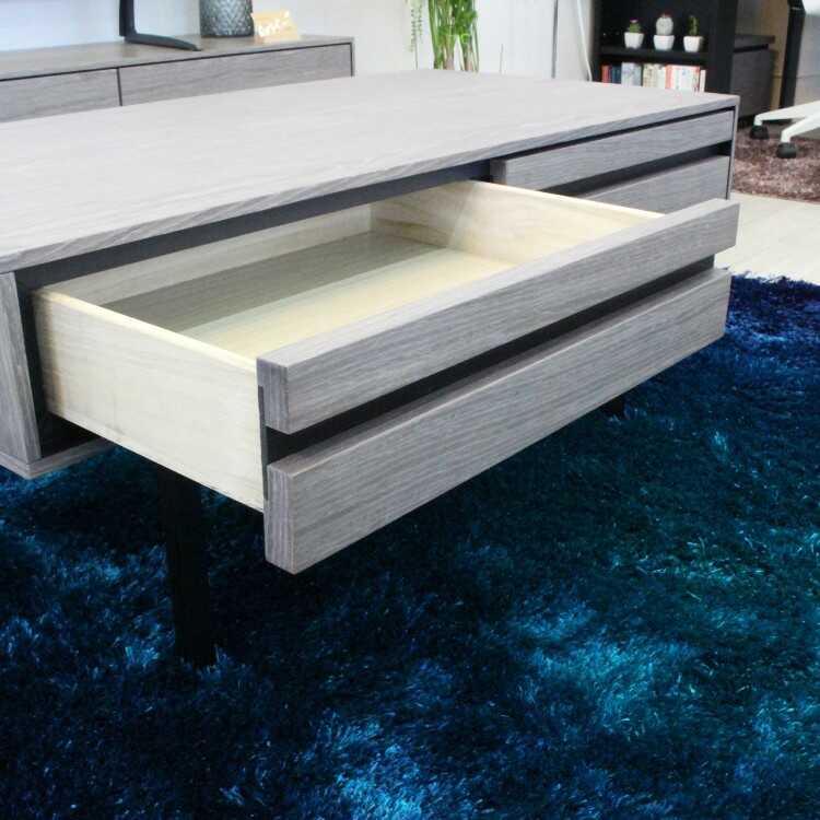 グレー色のスタイリッシュなローテーブルの脚は天然木アッシュ無垢材を使用した豪華な仕上がり。