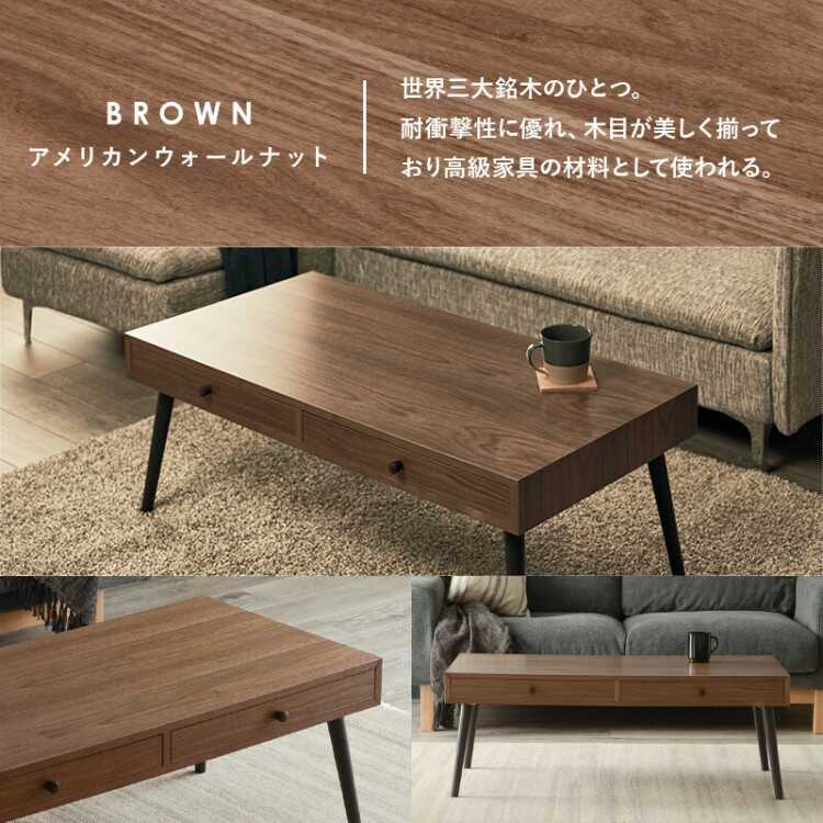 幅100cm・引出し収納付きセンターテーブル(ブラウン色/天然木ウォールナット製)