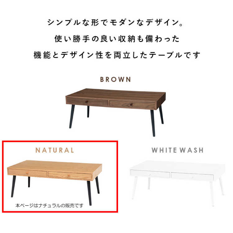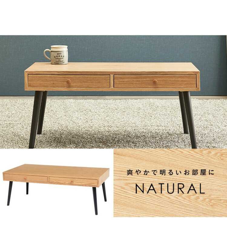 TA-2847 幅100cm・引出し収納付きセンターテーブル(ナチュラル色/天然木タモ製)