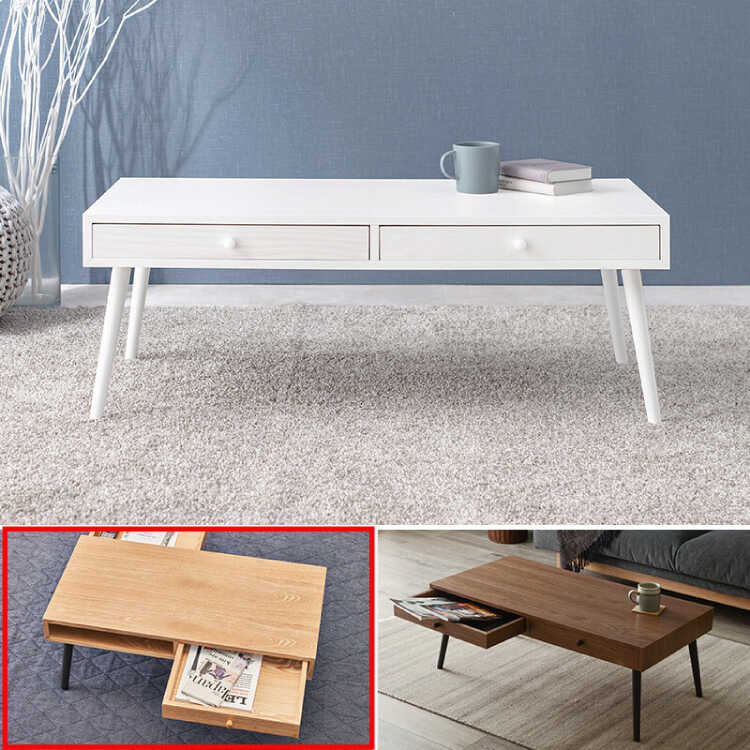 北欧やナチュラルテイストに相性抜群な引出し収納付きのタモ製センターテーブル。